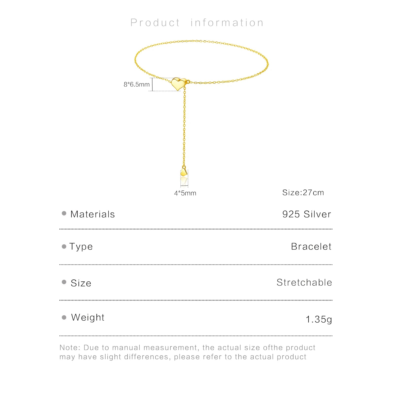 925 Sterling Silver Adjustable Heart Bracelet