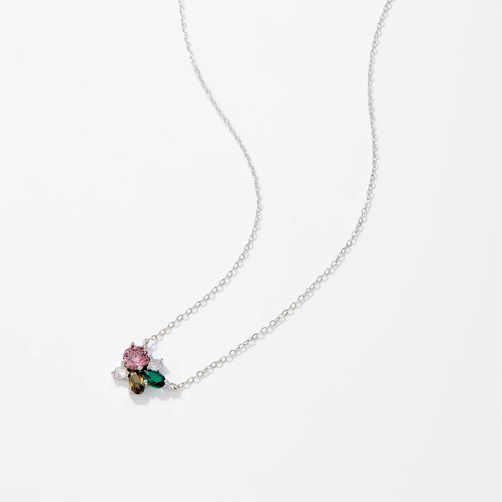 925 Sterling Silver Flower Zircon Necklace