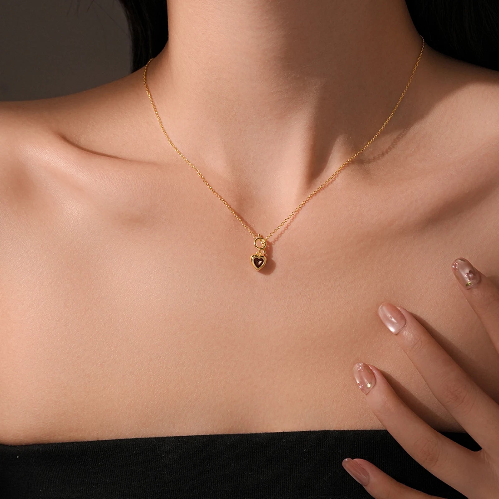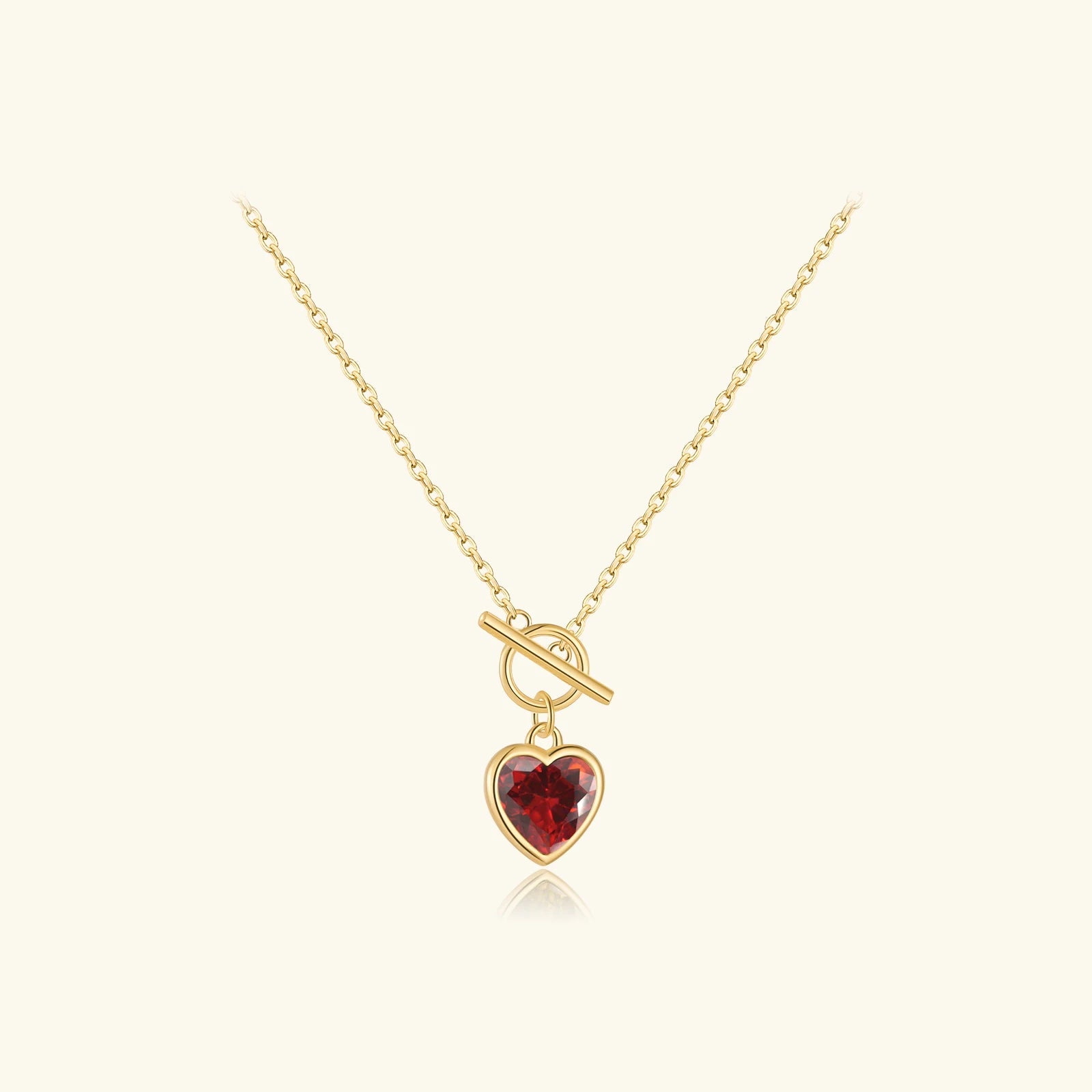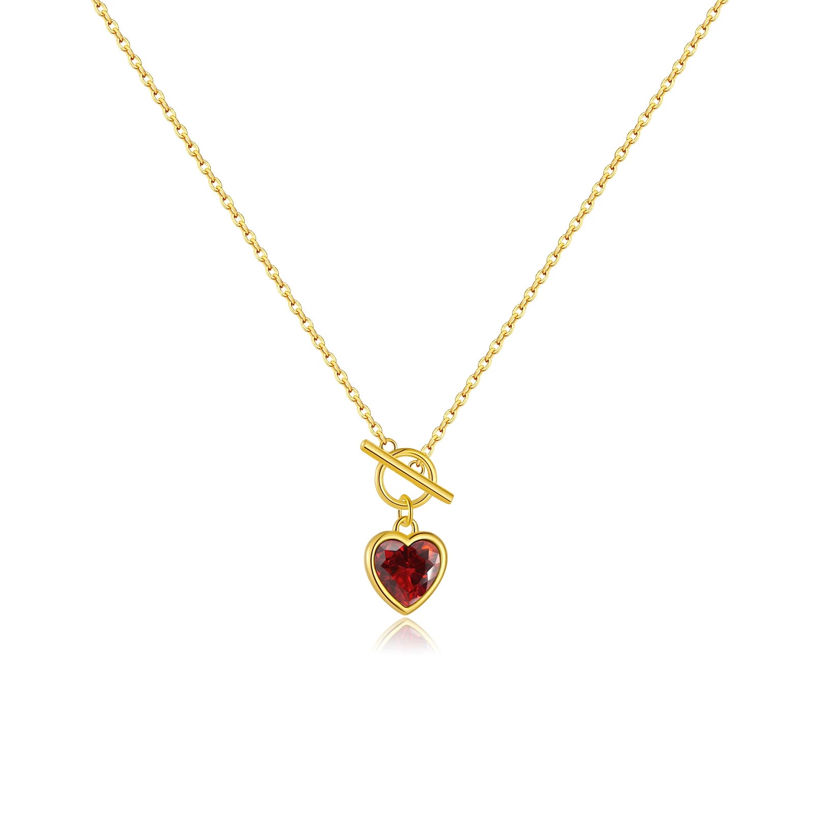 Heart-Shaped Pendant: Adorned with a vibrant red ruby zircon, symbolizing love and affection.