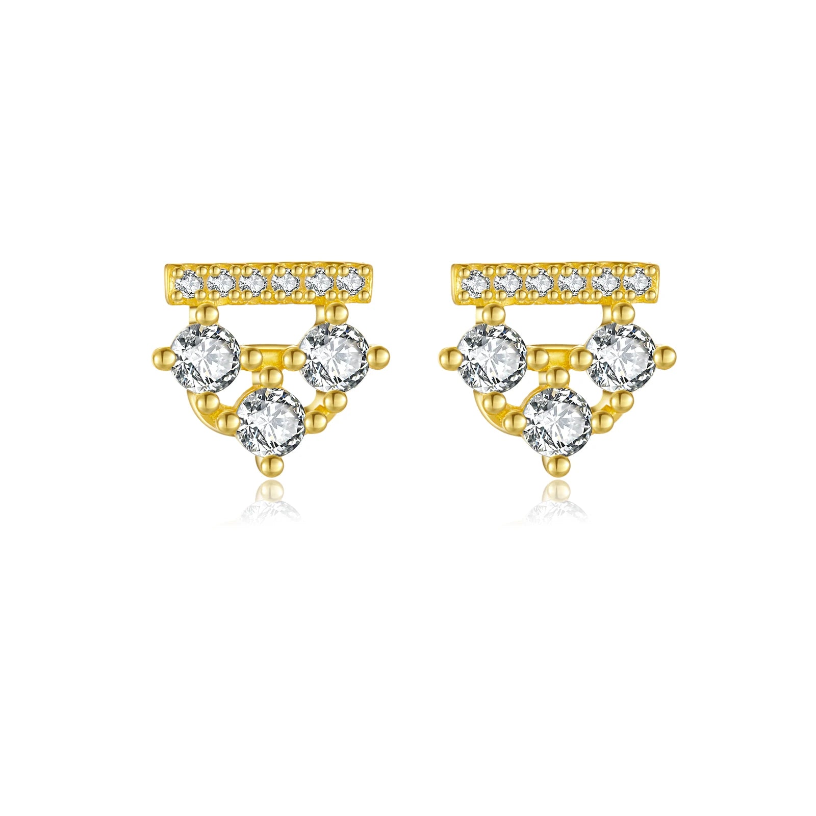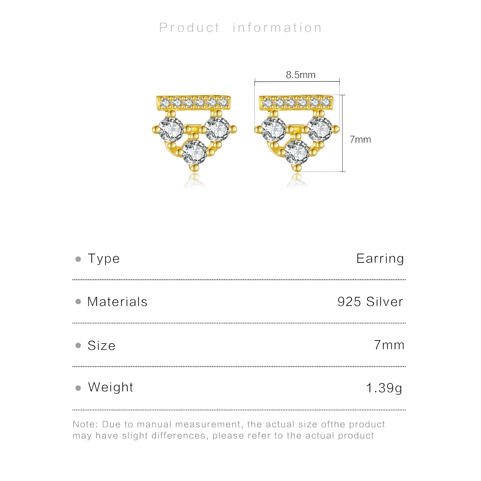 925 Sterling Silver Round Zircon Triangle Stud Earrings