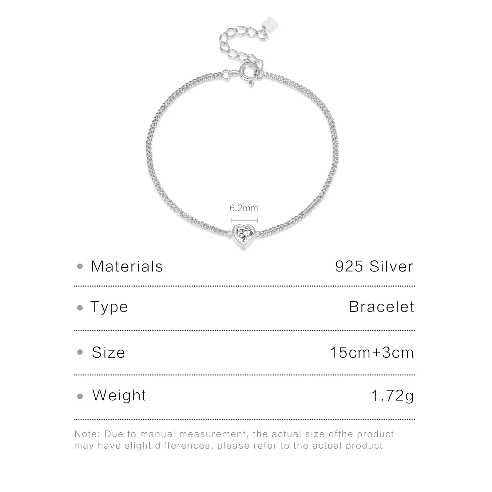 Adorn your wrist with the timeless beauty of our 925 Sterling Silver Zircon Heart Bracelet. This exquisite piece features a delicate chain crafted from genuine 925 sterling silver, known for its brilliant shine and enduring quality.
